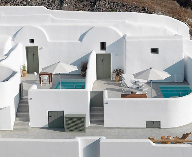 Wanneer we aankomen snap ik waarom George zo trots is. De prachtige witte huisjes liggen, zoals de naam al doet vermoeden, in een grot. De vier appartementen hebben allemaal een eigen terras met een aantrekkelijk privézwembad. Er heerst een kalmte in en rond de huisjes, waardoor ik me gelijk ontspannen voel. Ook de inrichting is prachtig. Ze zijn luxe en minimalistisch ingericht, met veel oog voor kleine details. Gelukkig mag ik van George zo lang blijven als ik wil.