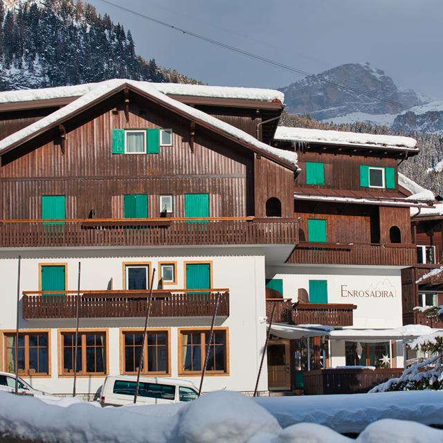 Sporthotel Enrosadira is een traditioneel hotel op loopafstand van het centrum van Campitello. Ook naar de piste kun je te voet, maar voor je gemak kun je ook gebruik maken van de eigen shuttlebus van het hotel, die je ’s ochtends en ’s middags van en naar de skilift Col Rodella brengt.