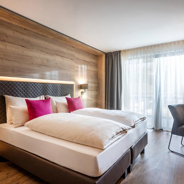 De inrichting van de kamers is geïnspireerd op de Alpen en is minimalistisch chic. Mede door de mooie combinatie van hout en warme kleuren zul je je hier direct thuis voelen. Na een goede nachtrust kun je ’s morgens op je balkon genieten van een kopje koffie en het waanzinnig mooie uitzicht op de bergen.